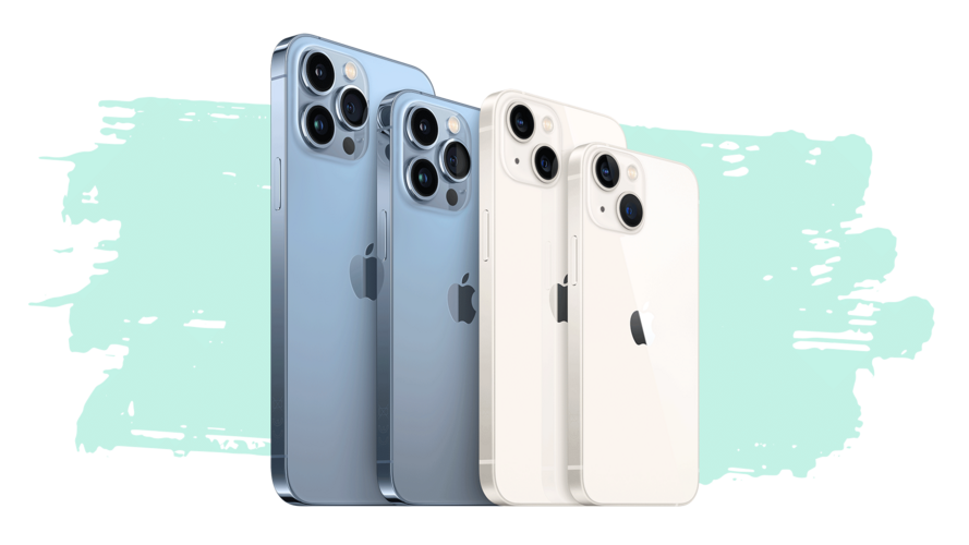 Das iPhone 13 und das iPhone 13 mini sind echte Alternativen zu den aktuellen Top-Modellen, vor allem in puncto Preis. So erhalten Käufer*innen ab € 799,– ein Smartphone, das hinsichtlich Leistung und Funktionsumfang sehr nah am Top-Duo angesiedelt ist. Echte Abstriche sind vor allem beim Kamerasystem zu machen. So stehen nur 2 statt 3 Objektive zur Verfügung. Auch auf den LiDAR-Scanner muss verzichtet werden. Weiterhin ist die ProMotion-Technologie dem iPhone 13 Pro (Max) vorbehalten. Statt wie beim iPhone 13 Pro (Max) auf Edelstahl, setzt Apple beim iPhone 13 (mini) zwar auf weniger widerstandsfähiges, dafür aber leichteres Aluminium. Wie beim Vorgänger steht neben dem gewohnt großen iPhone 13 (6,1" Display) auch ein iPhone zur Auswahl, das den Beinamen mini trägt. Mit anderen Worten: ein 5,4" großes Display im All-Screen-Design. Ansonsten liegt das iPhone 13 (mini) nahezu gleichauf mit den Top-Modellen: A15 Bionic-Chip für ein Maximum an Leistung, Nacht- und Porträtmodus für alle Kameras, Kinomodus, MagSafe-Kompatibilität und vieles mehr.